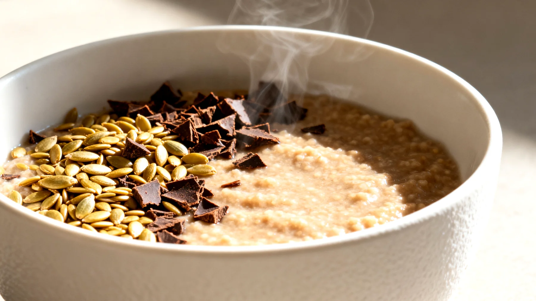 Der Magnesiumgehalt von Kakao-Nibs verdient besondere Erwähnung: Mit etwa 500 Milligramm pro 100 Gramm gehören sie zu den magnesiumreichsten Lebensmitteln überhaupt. Magnesium spielt eine zentrale Rolle bei der Muskelkontraktion und -entspannung, weshalb Diätassistenten es häufig zur Vorbeugung von Muskelkrämpfen empfehlen. Die leicht bittere Note der Nibs wirkt zudem als natürlicher Geschmacksausgleich zur Süße des Porridges und verhindert, dass zusätzlicher Zucker notwendig wird.